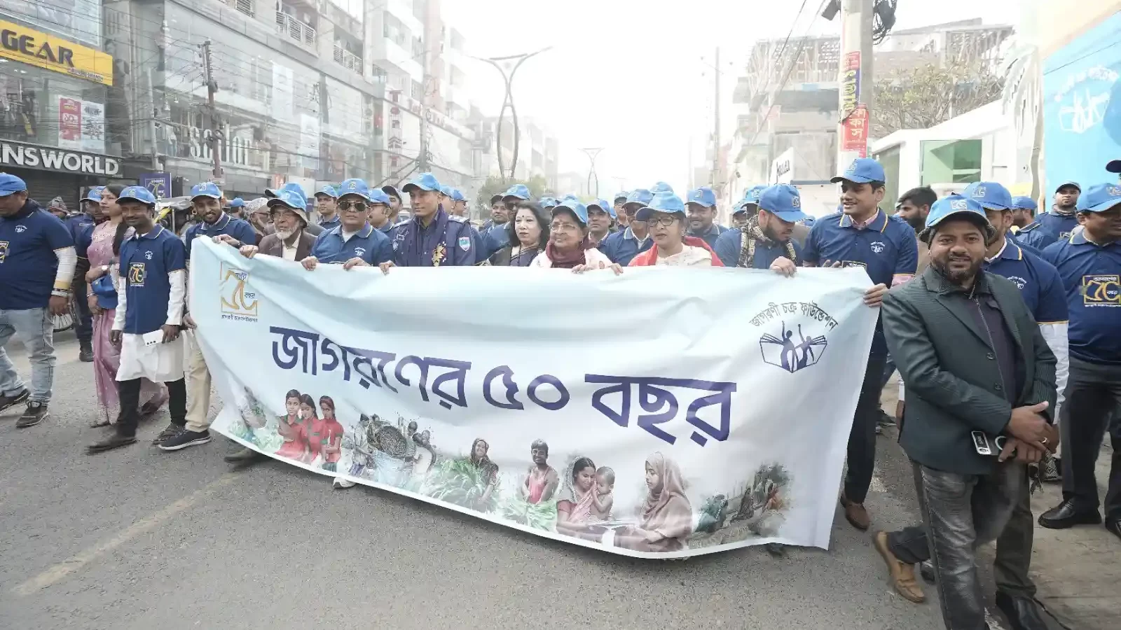 The celebration, titled in Bengle “জাগরণের ৫০ বছর”, began with a rally attended by over 500 participants from inaugurated by Jashore Superintendent of Police Mr. Syed Rafikul Islam.